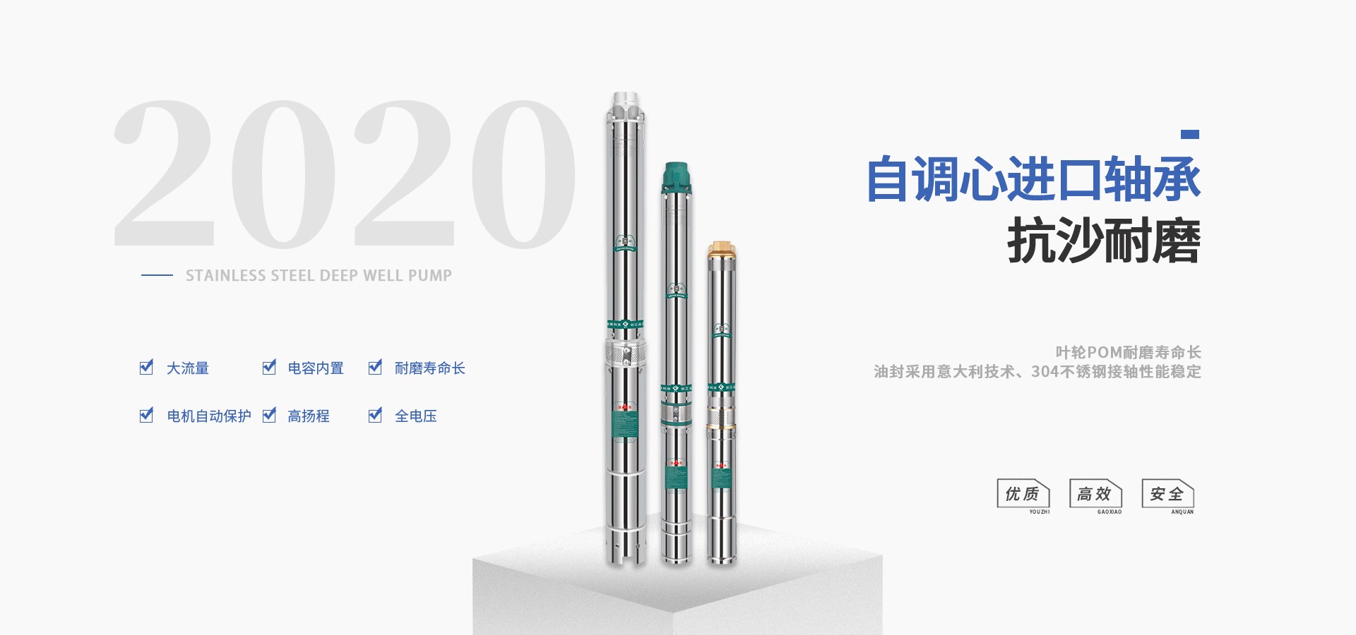 公司始終站在深井泵行業的前端位置,科研力量、產品和設備技術水平均達到國內優質水平,公司始終堅持走科技興企、自主創新的企業發展之路,產品不斷推陳出新,可廣泛應用于農業灌溉、生活用水、循環供暖、污水處理、市政供水、石油化工、冶金礦山等領域。
